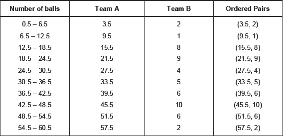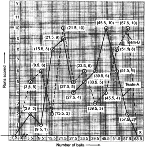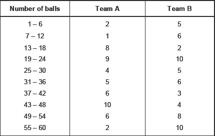 7.   The runs scored by two teams A and B on the first 60 balls in a cricket match are given below: