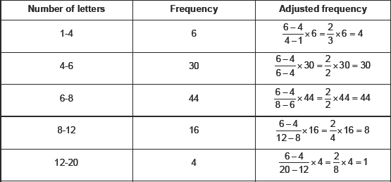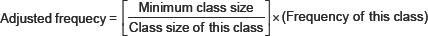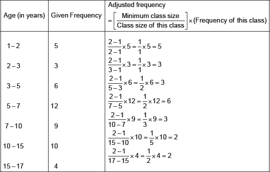 Sol. Here, the class sizes are different therefore, we calculate the adjusted frequencies corresponding to each rectangle.