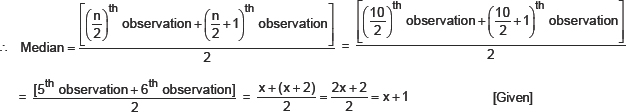 3.   The following observations have been arranged in ascending order. If the median of the data is 63, find the value of x.