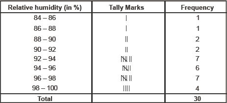 3.   The relative humidity (in %) of a certain city for a month of 30 days was as follows: