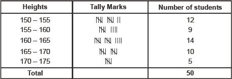 ∴ Classes are : 150 – 155, 155 – 160, ... 170 – 175.
