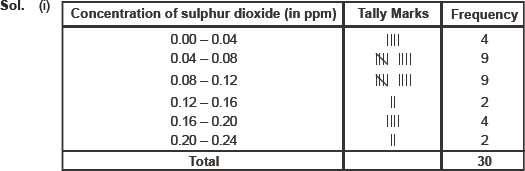 5.   A study was conducted to find out the concentration of sulphur dioxide in the air in parts per million (ppm) of a certain city. The data obtained for 30 days is as follows: