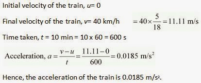 3.  A train starting from a railway station and moving with uniform acceleration attains a speed 40 km h-1 in 10 minutes. Find its acceleration.