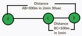 (d)How far has B travelled by the time it passes C?