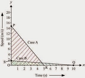5.  A driver of a car travelling at 52 km h-1 applies the brakes and accelerates uniformly in the opposite direction. The car stops in 5 s. Another driver going at 3 km h-1 in another car applies his brakes slowly and stops in 10 s. On the same graph paper, plot the speed versus time graphs for the two cars. Which of the two cars travelled farther after the brakes were applied?
