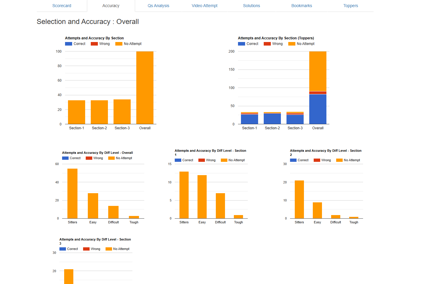 After submitting the exam, you get an in-depth analysis of how you performed section-wise.