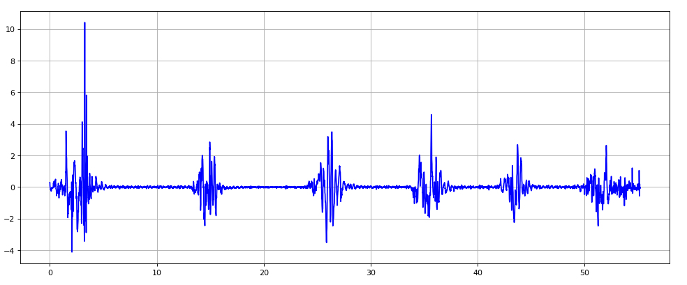 Plot the wave former view of the given csv file(i.e time versus readings in y direction)
