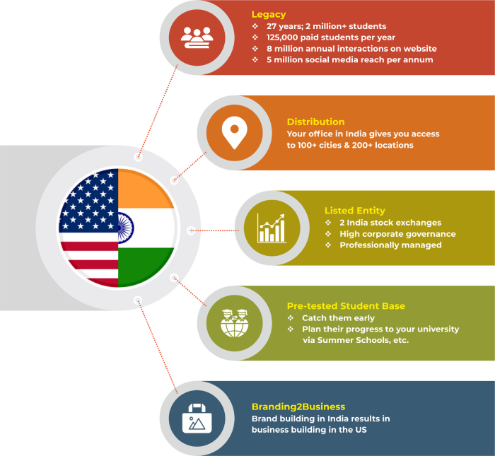 One might wonder, why establish a physical office in India when virtual collaborations are increasingly becoming the norm? The answer lies in the sheer potential that India, with its young and aspirational population, holds. A local office signifies commitment, creates a sense of permanence, and gives a face to the brand. Partnering with CL Educate can give US universities access to their distribution network that spans over 100 cities across India with 200 locations. This expansive outreach can potentially influence millions of aspiring students and their families, an opportunity not worth missing.